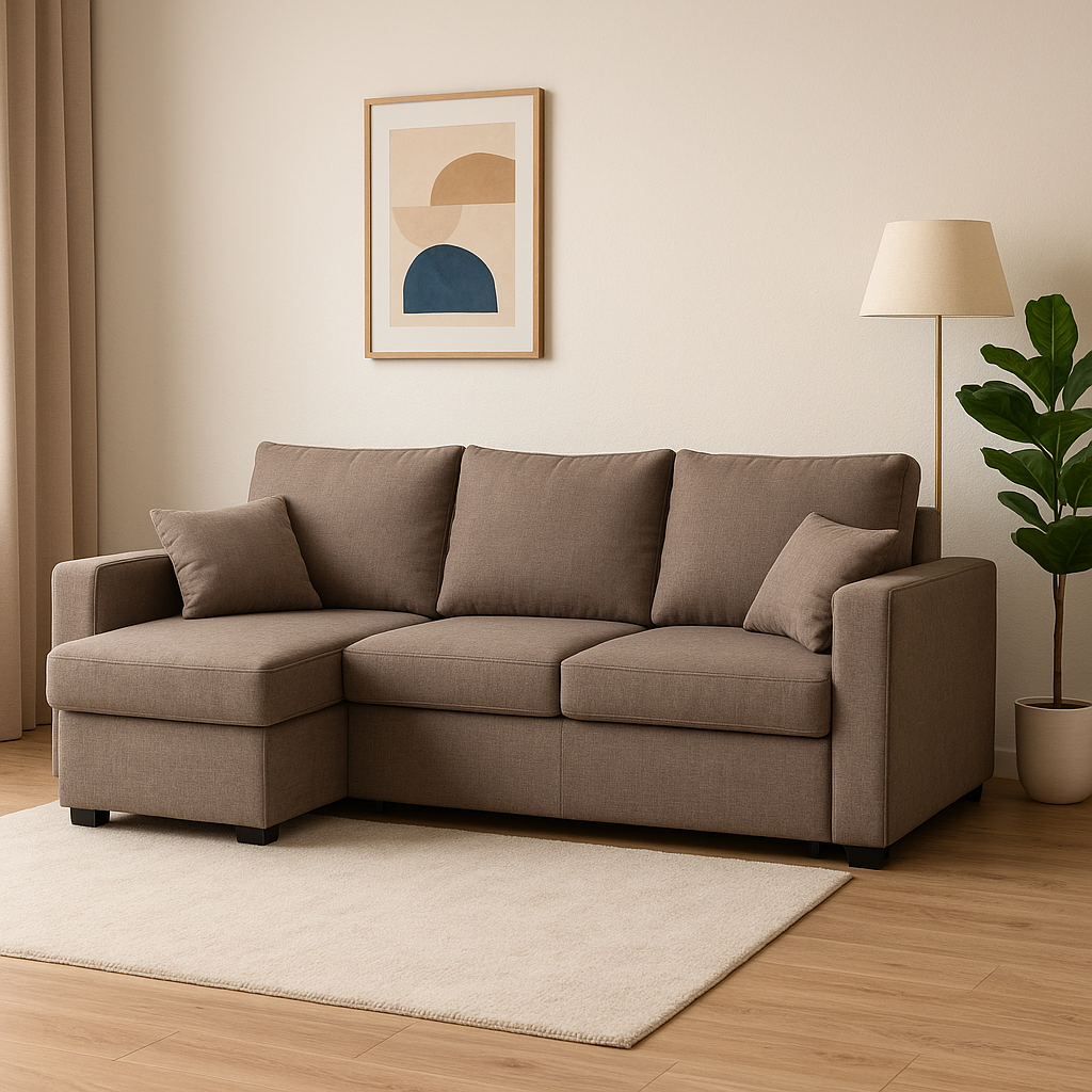 Sofá Chaise Longue VIKA con Arcón Abatible 263 cm – Color Arena