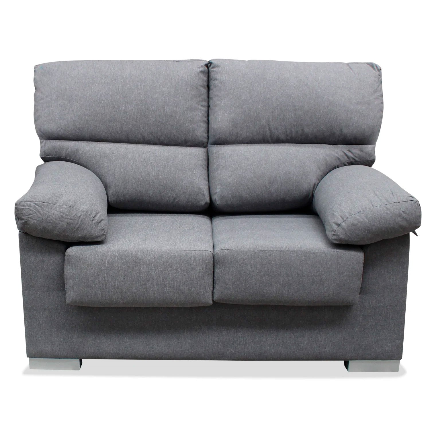 Para la fabricación de este sofá 2 plazas barato se han utilizado materiales de gran calidad. Tanto en su estructura, como en las espumas de 25 kg de densidad que forman los asientos, y en su tapizado con tratamiento antimanchas de color gris. Este revolucionario tejido es muy agradable al tacto y repele los liquidos y las manchas con mucha facilidad. Se puede lavar en lavadora, ya que las fundas de los asientos, brazos y respaldos son desenfundables mediante cremalleras ocultas.