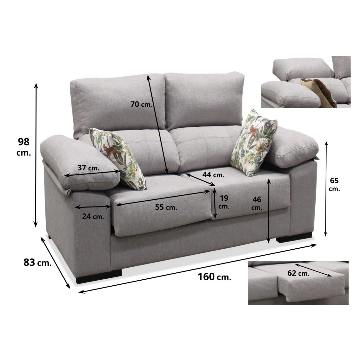 Sofá 2 plazas Castilla 160 cm. en gris claro