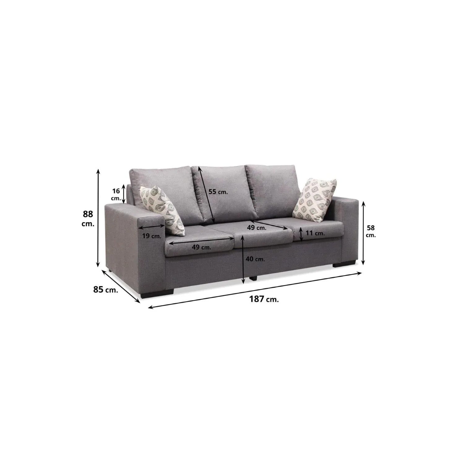 Sofá 3 plazas Belén color gris 187 cm. Microfibra lavable