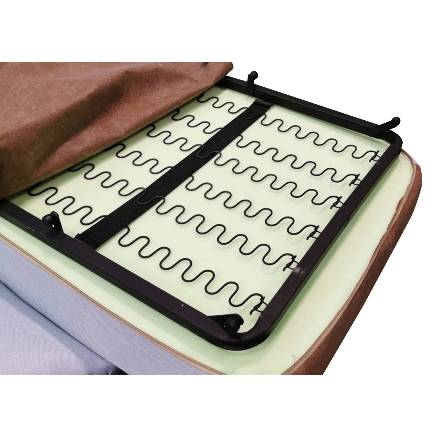 Los asientos en el interior llevan una goma espuma de 32 kg de densidad suave que facilitan una sentada cómoda, confortable. Se deslizan mediante unas correderas metálicas ocultas con un bastidor de muelles en zig zag que nos garantizan una gran durabilidad ya que es mucho más duradera que las cinchas Nea de cualquier otro modelo. Las correderas van punto por punto para que las extendamos más o menos según estemos más cómodos en un momento determinado.