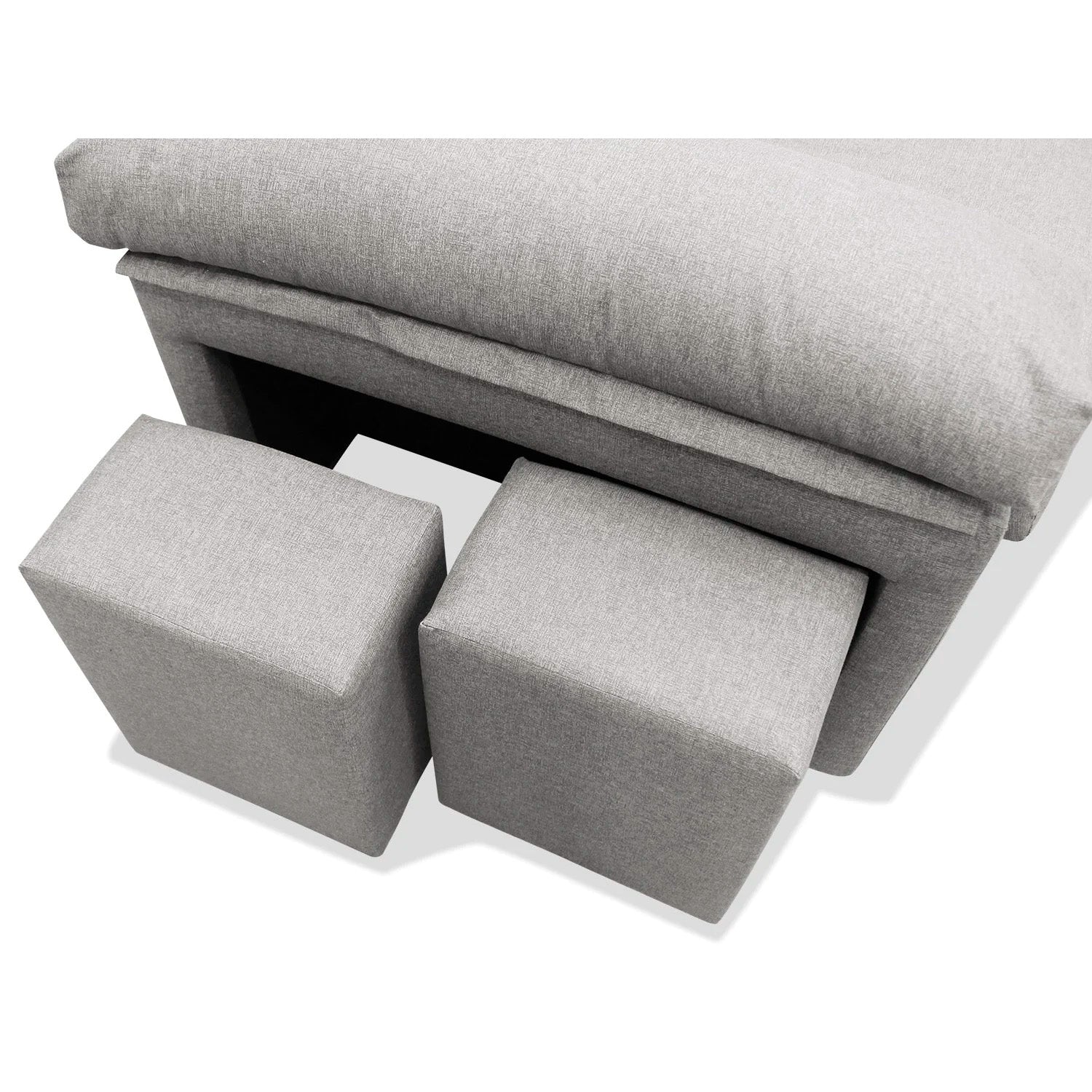 El brazo corto del sofá 2 plazas tiene un grosor de 26 cm x 65 cm de altura y 90 cm de fondo, lleva incorporado un cojín denominado siesta con la finalidad de que si nos tumbamos a echarnos una cabezada estemos con la cabeza apoyada. Los dos taburetes interiores que van incorporados en el brazo tienen una medida de 35.5 cm de ancho x 2.5 cm de fondo x 43 cm de alto, estos auxiliares nos van a venir muy bien si tenemos visitas en casa y no sabemos dónde sentarlas, no ocupan nada de espacio y son de una enorme practicidad.